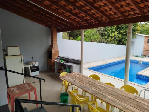 Terreno com 1.300 m², toda fechada. Casa com sala, cozinha externa e 2 dormitórios, churrasqueira, piscina de vinil, banheiro externo, área externa gramada, tanque de peixe.