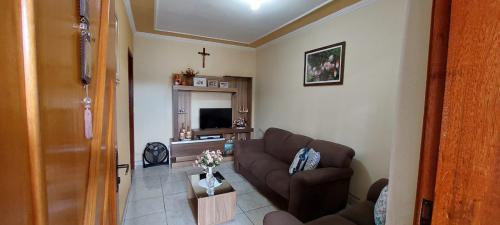 3 dormitórios, sala, cozinha, banheiro, área serviço e garagem para 2 carros cobertos.